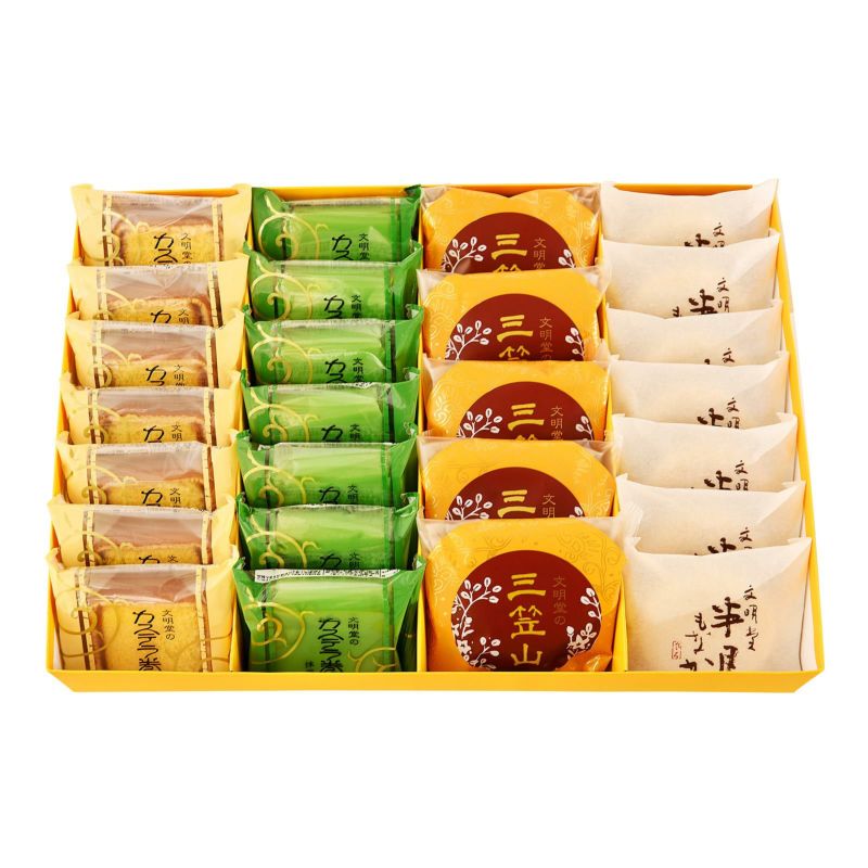 しっとりとした三笠山の生地でくるんだ「カステラ巻」、北海道産小豆を使用した「三笠山」、小豆を贅沢に使用した「半月最中」が入った盛りだくさんの詰め合わせです。結婚、出産、誕生日など各種お祝い事、お中元・お歳暮などお世話になった方へのご贈答品にどうぞ。